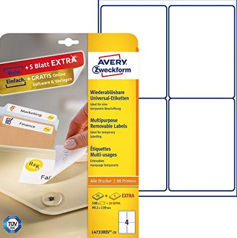 ETICHETTA AVERY POLIESTERE 64.6x33.8 20fg ** SU ORDINAZIONE **