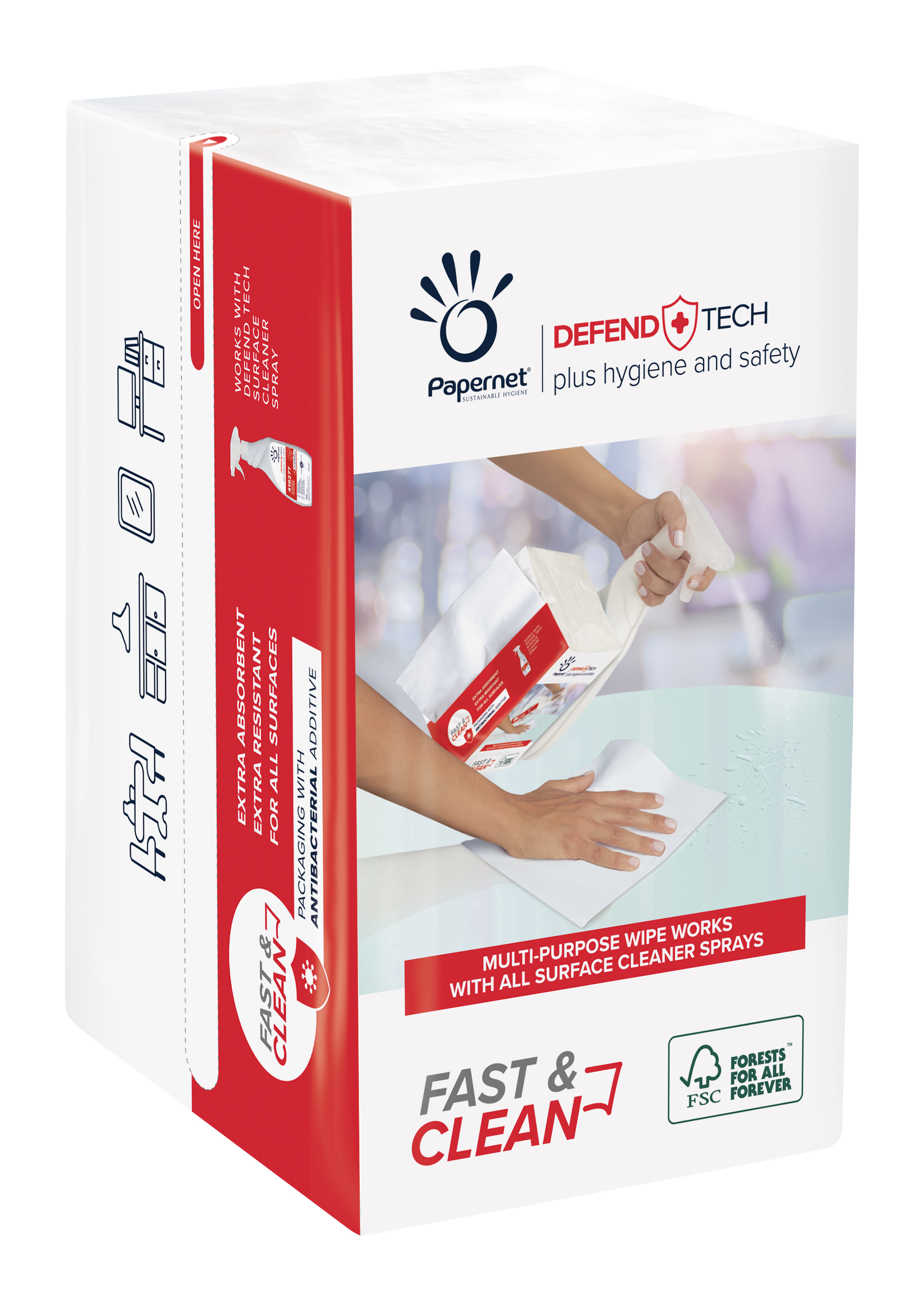PANNO CARTA FAST&CLEAN PZ.100 DEFEND TECH ANTIBATTERICO cm.21.6x33.25